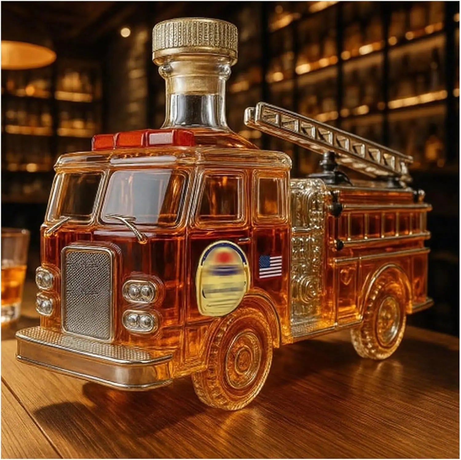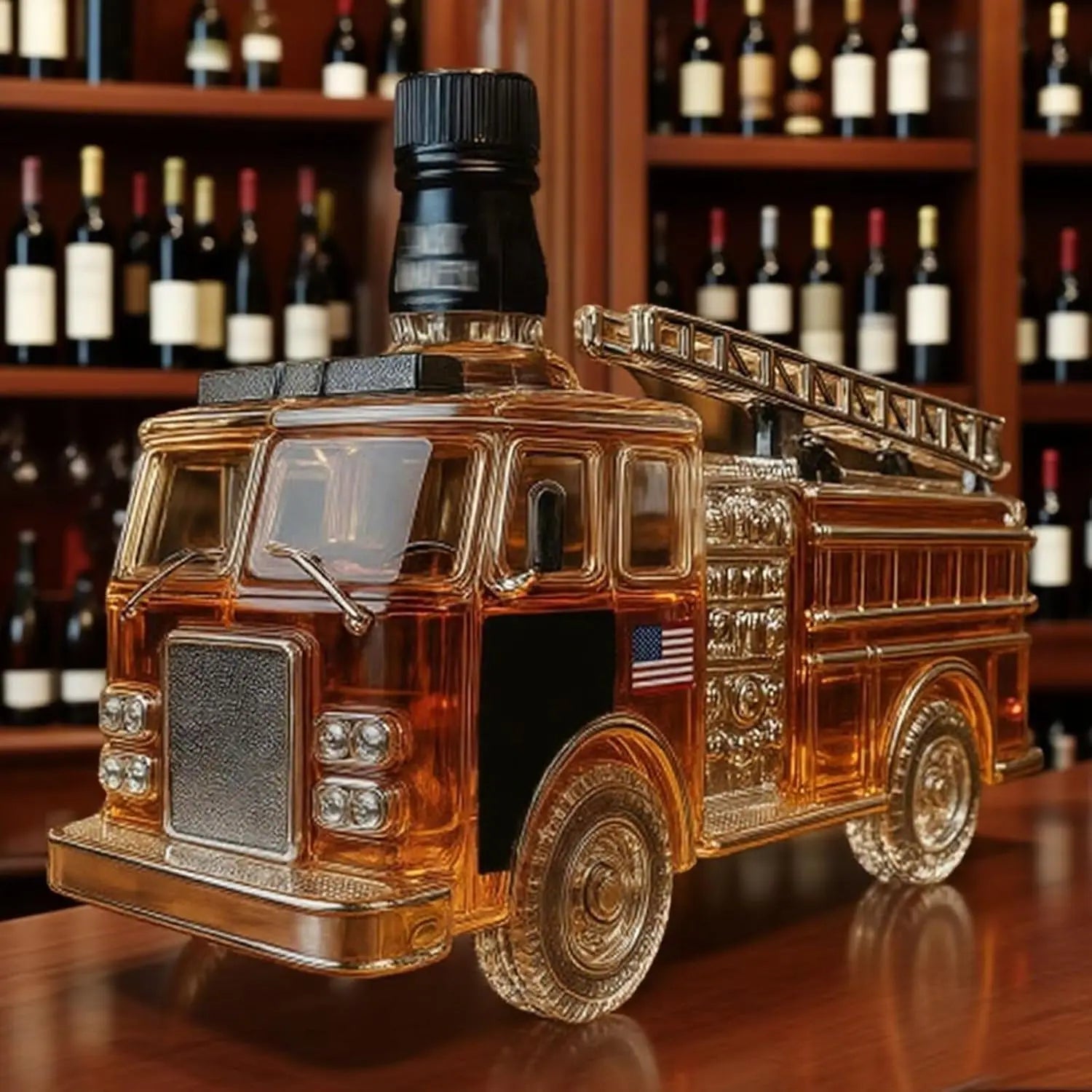 Fire Truck Shaped Liquor Decanter,300ml Glass Decanter Hand-Carved Automotive Theme Liquor Dispenser Personalized Wineware