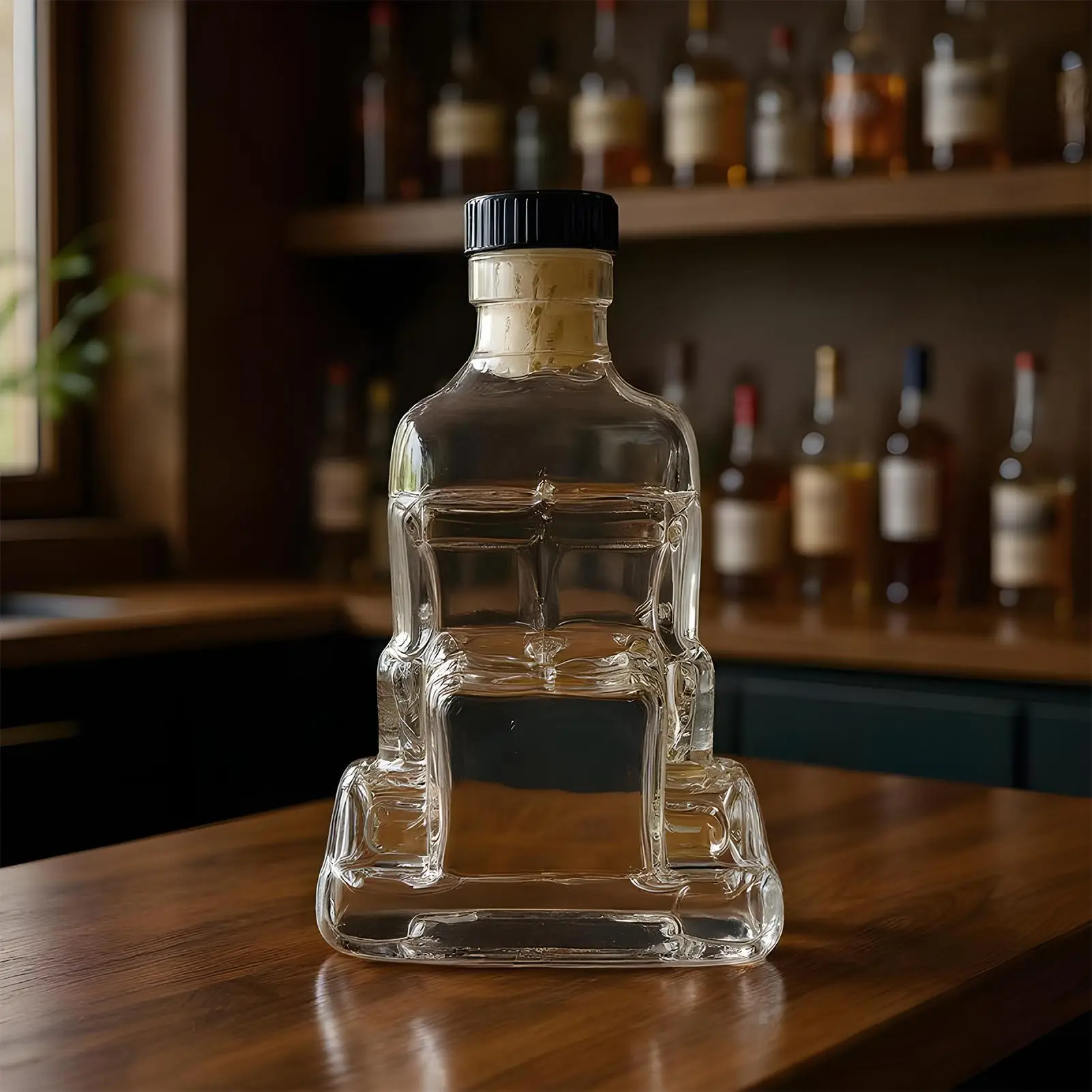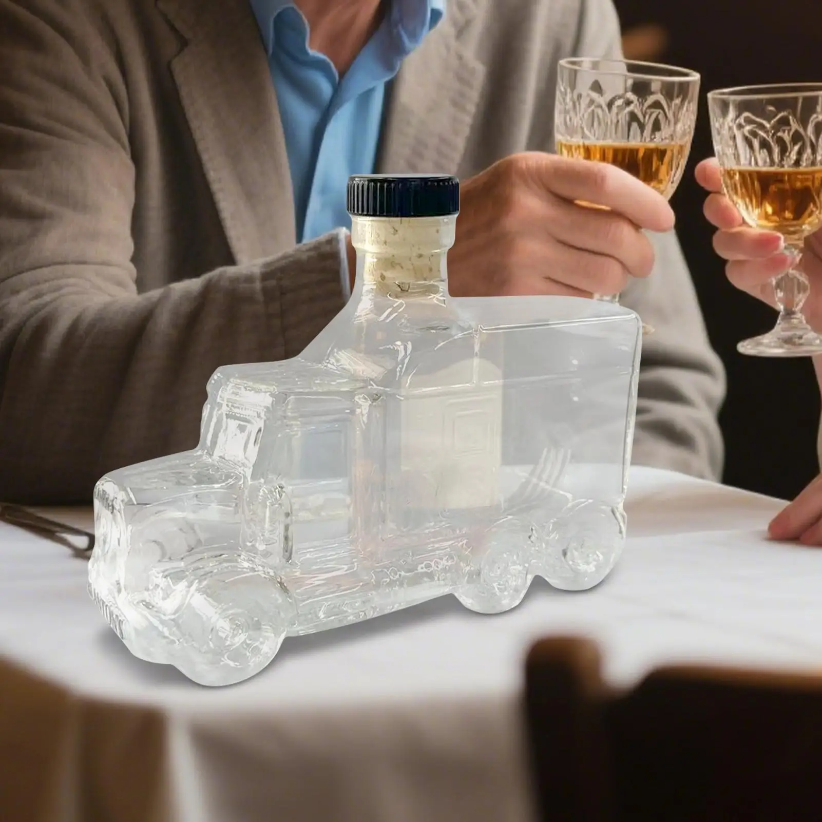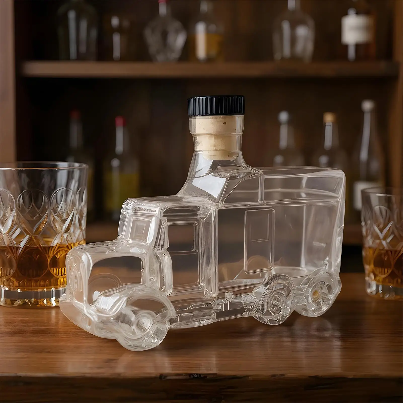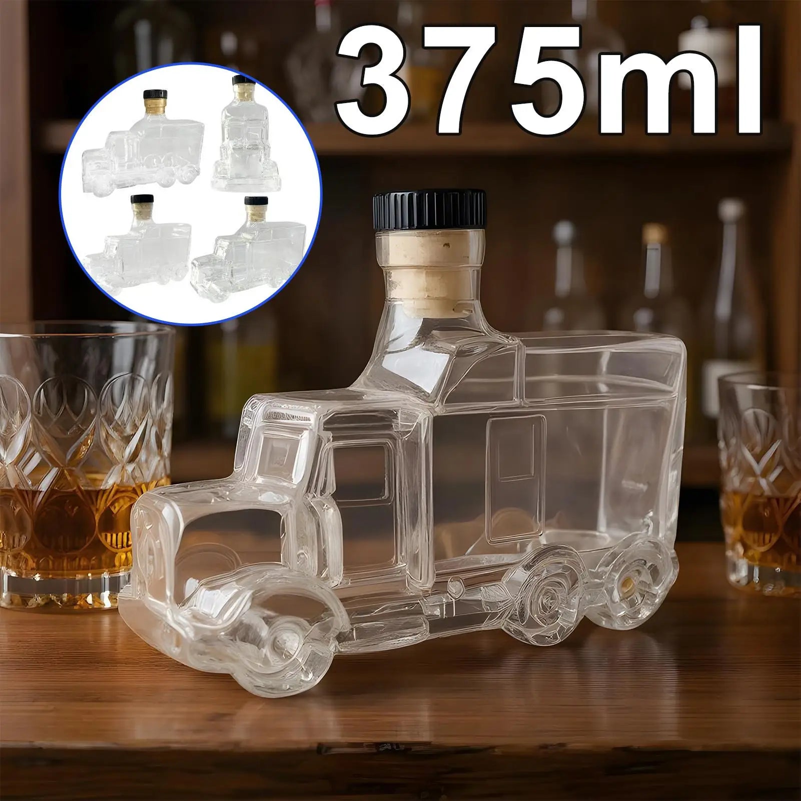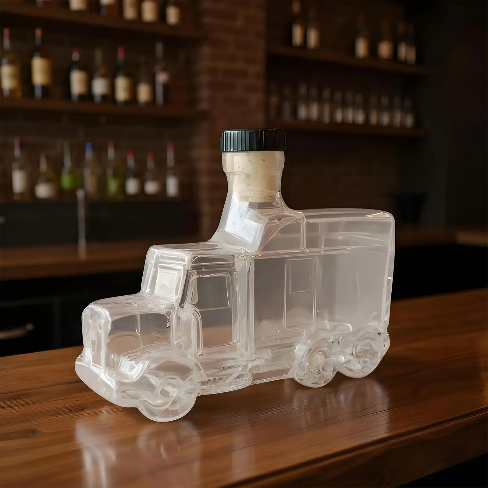 1.Truck-inspired Stability: The whiskey decanter features a truck-shaped base with a slip-resistant structure, ensuring safe placement and leak-proof sealing for everyday use while the thickened glass body enhances durability and aesthetic appeal