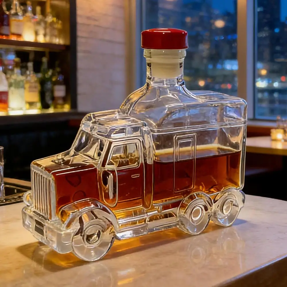 Funny Whiskey Glass Decanter 375ml Glass Whiskey Wine Bottle Statue Decoration Half Truck Bourbon Dispenser For Bar Office Home